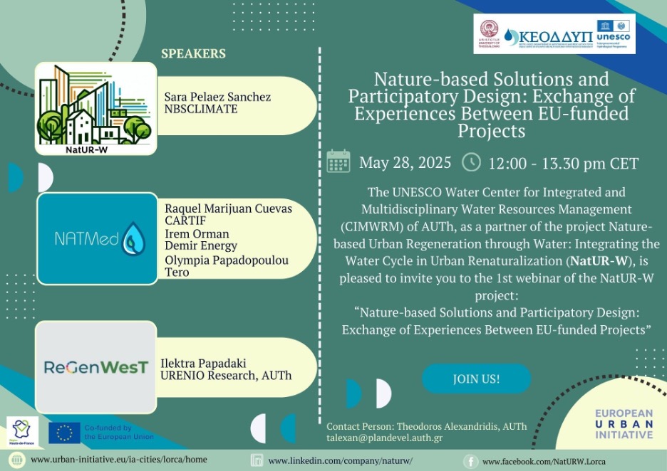 On 28 May 2025, the UNESCO Water Center for Integrated and Multidisciplinary Water Resources Management (CIMWRM) of AUTh successfully hosted the 1st webinar in the NatUR-W series: