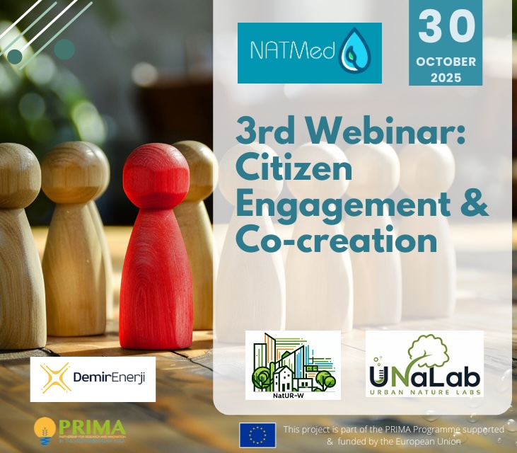 On 30 October, the NATMed Project held its third and final external webinar, organized by   Demir Enerji. The webinar brought together inspiring projects and experts to share knowledge on citizen engagement and co-creation in the implementation of Nature-based Solutions (NbS).